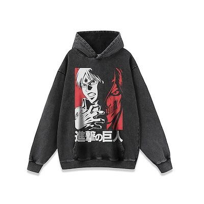 【急速出荷】日本のハイストリートダイナミックダイレクトプリントプリントダメージ加工長袖パーカーメンズレディースウォッシュドフード付きスウェットシャツ