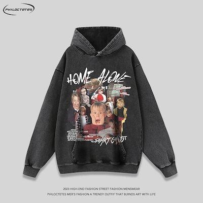 【急速出荷】ヨーロッパとアメリカのレトロな映画ポスターポートレートプリントヘビーダメージウォッシュフード付きスウェットシャツメンズとレディースのカジュアルジャケット