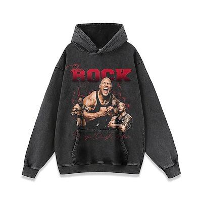 【急速出荷】レトロなストリート ヒップホップ レスリング ポートレート プリント メンズとレディース セレブ プリント ウォッシュド フード付き スウェットシャツ トレンディ