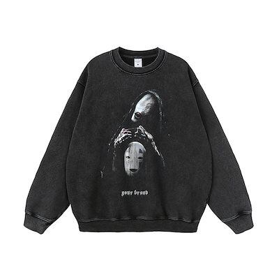 【急速出荷】アメリカンレトロなダークデビルプリントウォッシュ加工とダメージ加工のメンズとレディースのルーズハイストリート漫画フード付きスウェットシャツカジュアルジャケット