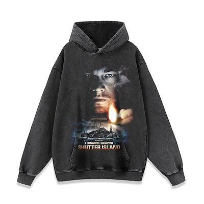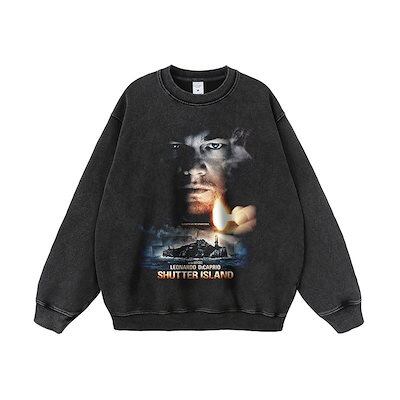 【急速出荷】アメリカンレトロムービープリント重度にダメージ加工を施したウォッシュドメンズスウェットシャツフード付きストリートファッションヒップホップ秋冬レディース