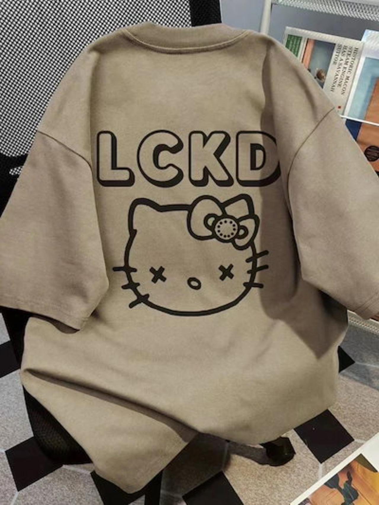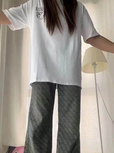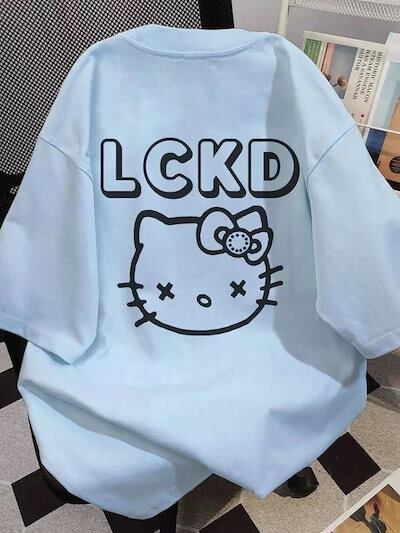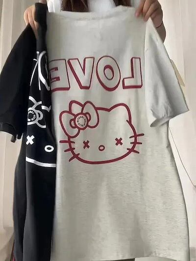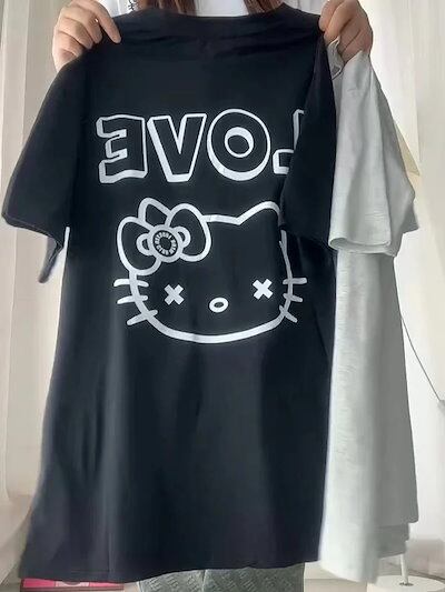 【急速出荷!】ハローキティ半袖kt猫プリント肩パッドtシャツミドル丈レディース夏ゆったり五分袖トップス半袖