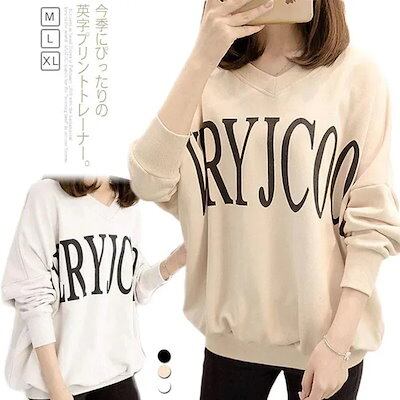 トレーナー Tシャツ レディース プリントTシャツ 大きサイズ スリーブ 長袖 トップス プルオーバー カジュアル 春 春服 秋服