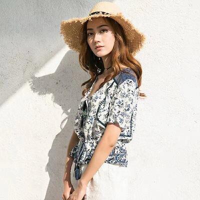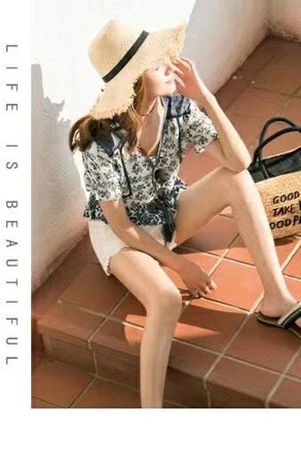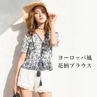 爽やか大人可愛いヨーロッパ風 花柄プリント 袖 花柄カットソー トップス ブラウス レディース 40代 春夏新作 オシャレブラウス パフスリーブシャツ 半袖トップス ボート 大人 上品 通勤OL 20
