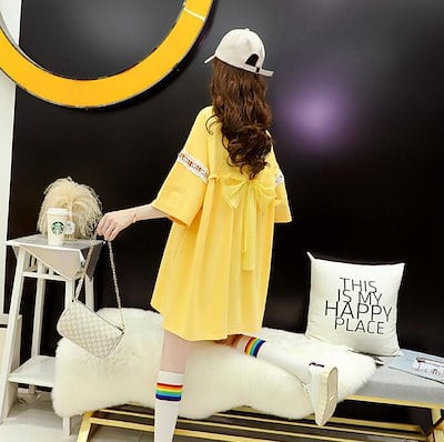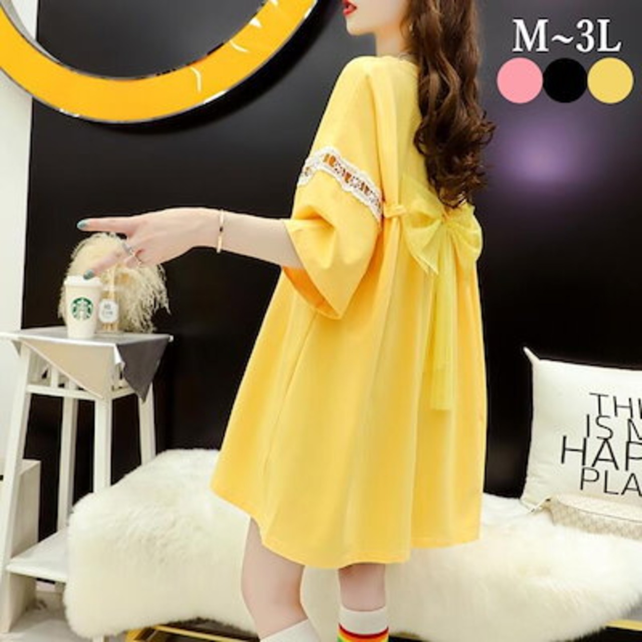 Tシャツワンピース ワンピ リボン レース ロングTシャツ ミディアム ロゴ プリント ロング ビッグシルエット 大きいサイズ 半袖 レディース かわいい 夏 M L 2L 3L