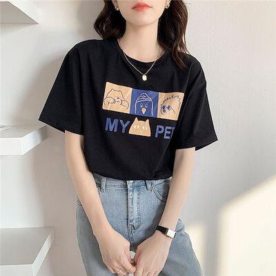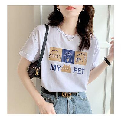 半袖tシャツ レディース Uネック 白半袖tシャツ カットソー 半袖 プリント ロゴ tシャツ 20代 30代 40代 新作 夏 バレンタイン 2023 プレゼント