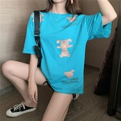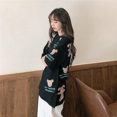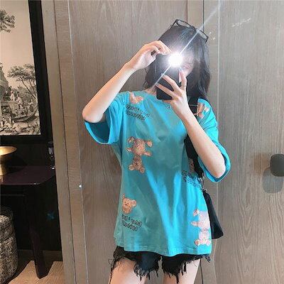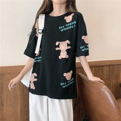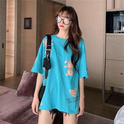 半袖tシャツ レディース ビッグtシャツ プリント クマ 半袖tシャツ 可愛い ゆったり カットソー 半そでTシャツ ゆるカットソー 夏服 肌着 リゾート バレンタイン 2023 プレゼント