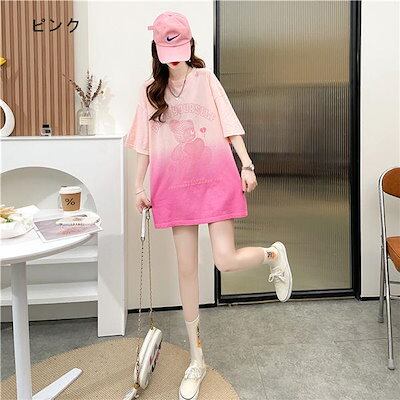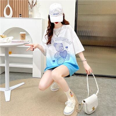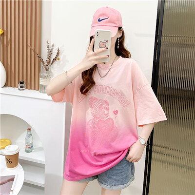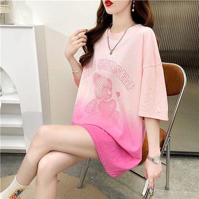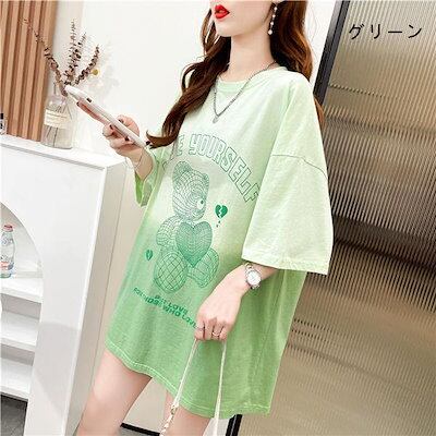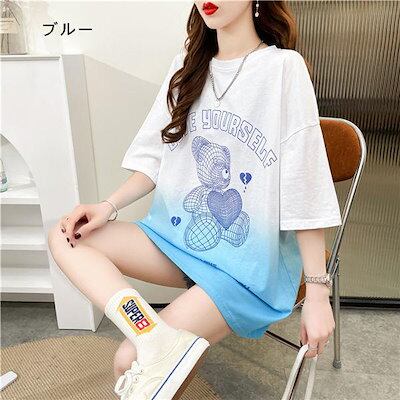 半袖tシャツ レディース ビッグtシャツ tシャツ クマ柄 可愛い ゆったり カットソー プリント クマ ゆるカットソー 夏服 肌着 リゾート バレンタイン 2023 プレゼント