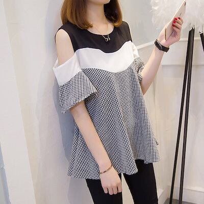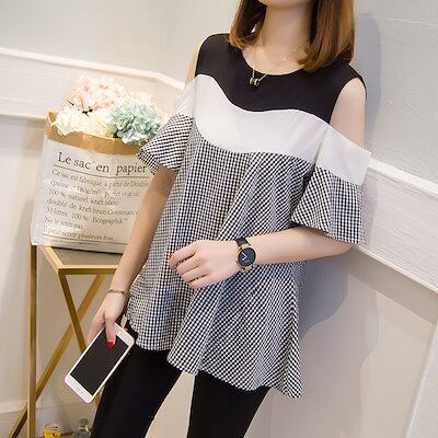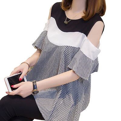 Tシャツ 長袖ブラウス ブラウス シアーシャツ 体型カバーチュニック tシャツ 半袖 格子 夏 韓国ファッション ゆったり トップス レディース 冬でもラウス シアーシャツ シアーシャツ 今っぽ