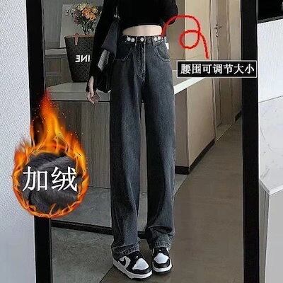 パンツ 裏起毛 厚手 ワイドパンツ 秋冬新作 レジャー ゆったり ハイウエスト 細い ストレート レディース 韓国ファッション