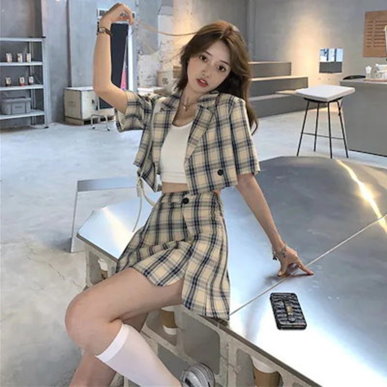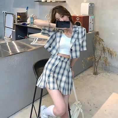 セットアップ 2025新入荷 アカデミア風スーツ女夏小柄気質ショート丈スーツ2着 夏 レディース