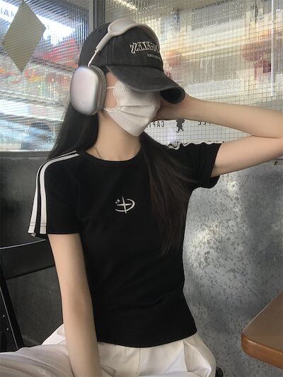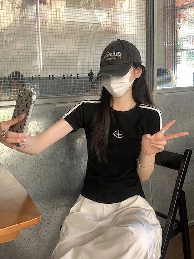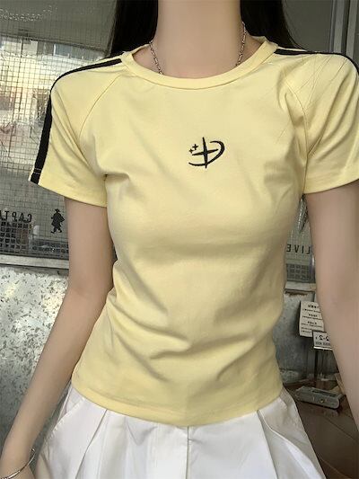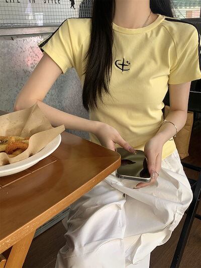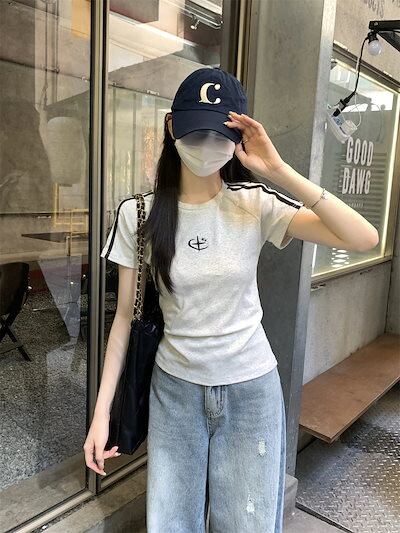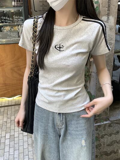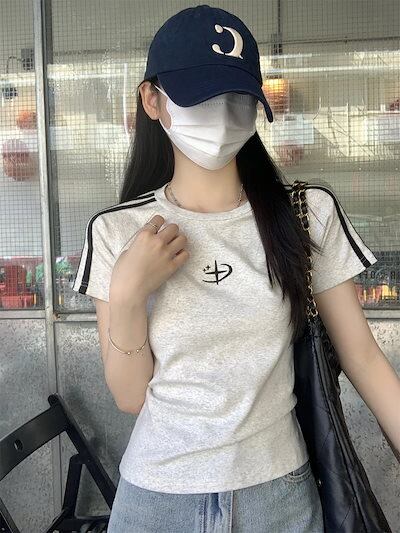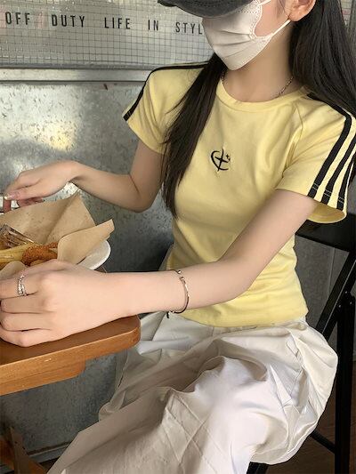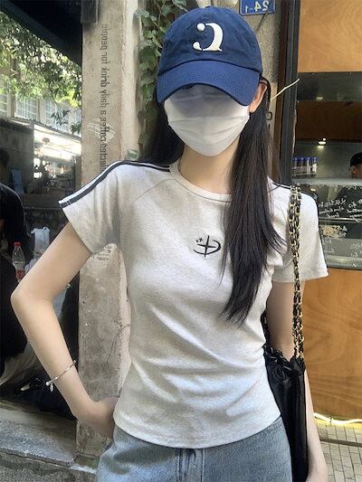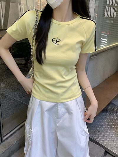 2025 春夏トップス 半袖 Tシャツ 韓国 レイヤード風 ショート丈 着痩せスリムかわいいフレンチセクシーラウンドネックおしゃれスリーブカジュアルコーデファッション系レディースお出かけ T