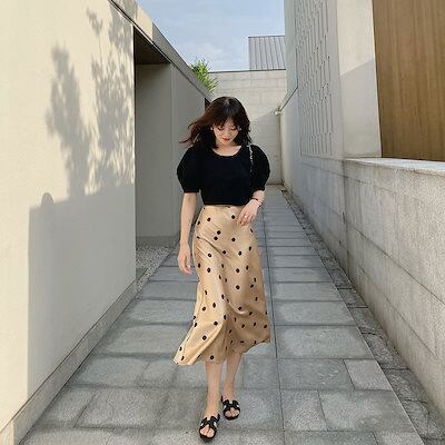 プリーツスカートマキシスカートレディース 23新作 ハイエンドサテンスカート トレンド水玉バイアスカットAラインスカート韓国ファッション