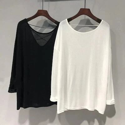 【急速出荷!】Tシャツカットソー 無地 セミロング 長袖 tシャツ 半袖 レディース ゆったり インナー 無地 着やせ トップス UVカット