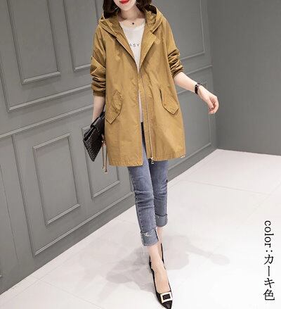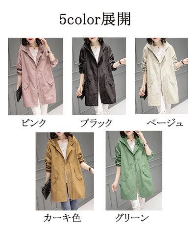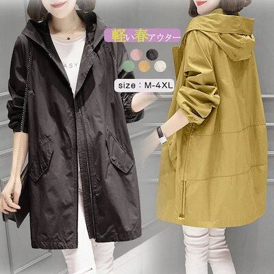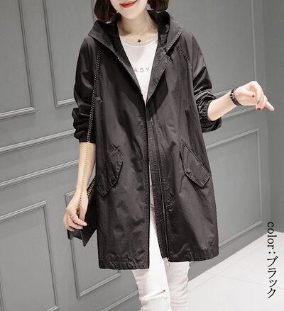 フード付き パーカー レディース 春夏 アウター 40代 30代 女性 マウンテンパーカー ロング コート トップス 長袖 ロングコート 黒 ブルゾン 開襟 フード付きパーカー シワなし 防風 ファッ