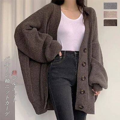 バルーンスリーブ ドルマン ロングカーディガン 秋 冬 ニットカーディガン レディース ロング 秋冬 トップス 長袖 セーター ニット カーディガン ドルマンスリーブ 大きいサイズ ゆったり リブ リ