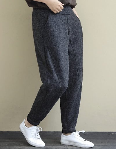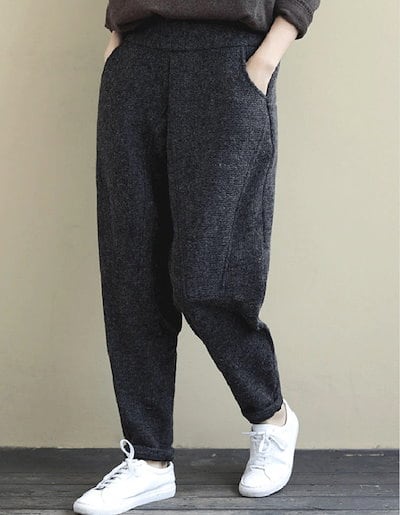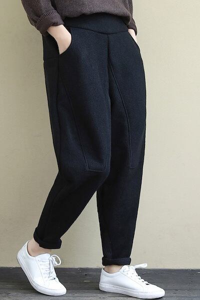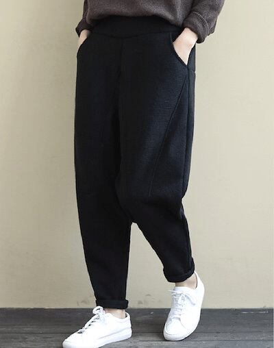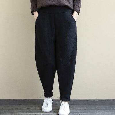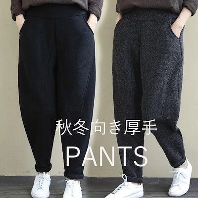 パンツ レディース 秋冬 キレイめ ロングパンツ 裏ボア 裏起毛 サルエルパンツ 冬物 コクーンパンツ ロング丈 ウエストゴム サイドポケット カジュアル ゆったり ボトムス 秋 冬 黒/グレー イー