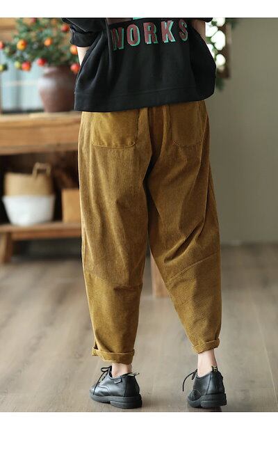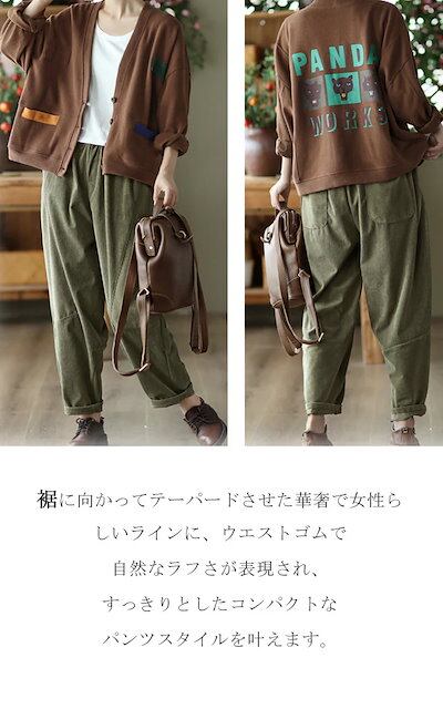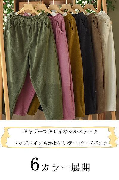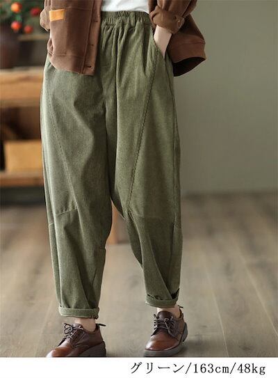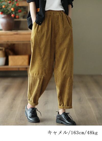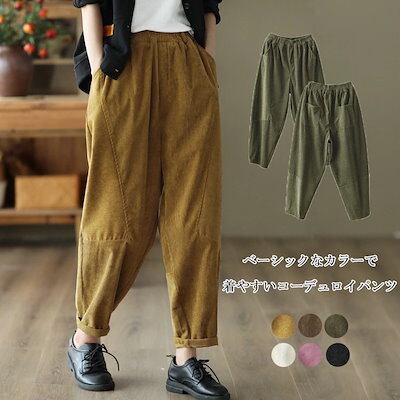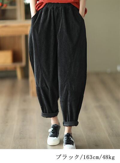 コーデュロイ パンツ テーパードパンツ 黒 40代 レディース 冬 秋 春 コーデュロイパンツ 大きいサイズ ウエストゴム ワイド パンツ テーパードパンツロング バルーンパンツ ボリューム 春物穿き