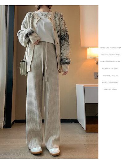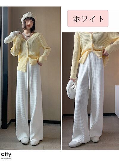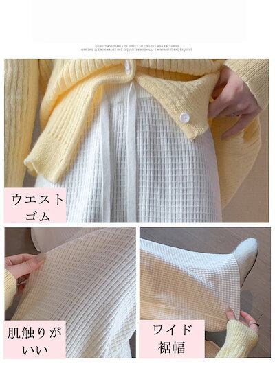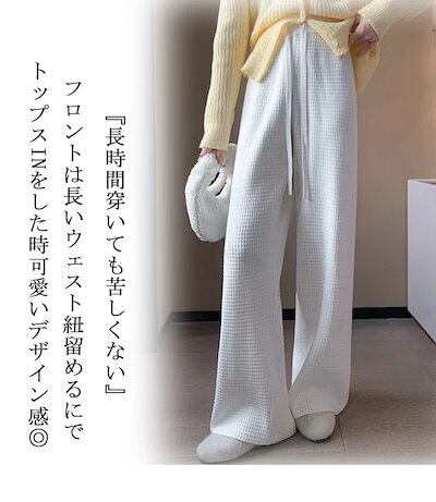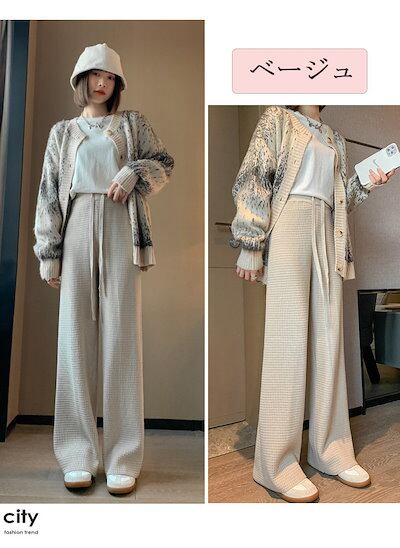 ワッフル ワイドパンツ イージーパンツ パンツ レディース 秋冬 ニット ストレートパンツ ニットパンツ 冬 ロング 防寒 保温 ロングパンツ ウェストゴム 体型カバー ハイウェスト ボトムス 細見え