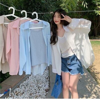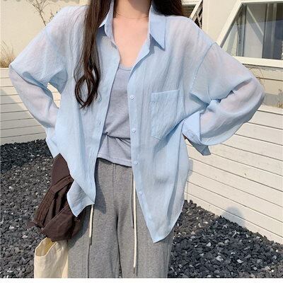 2025 春夏 シャツ カジュアル 薄手 長袖 日焼け防止 ブラウス レディース トップス 韓国ファッション