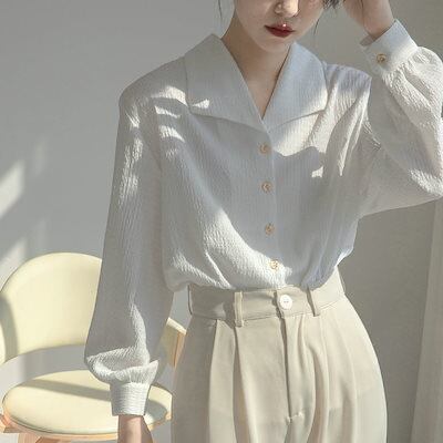2025 春 夏 シャツ レディース ブラウス 通勤 無地 トップス 韓国ファッション