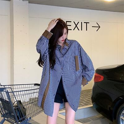 2025 春 夏 シャツ レディース ブラウス ストライプ長袖シャツ トップス 韓国ファッション