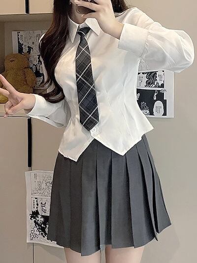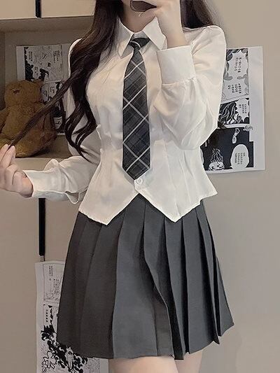 2025 春 夏 シャツ レディース ブラウス 制服シャツ 長袖 無地 トップス 韓国ファッション
