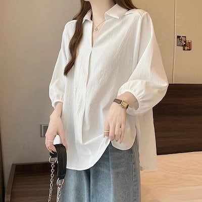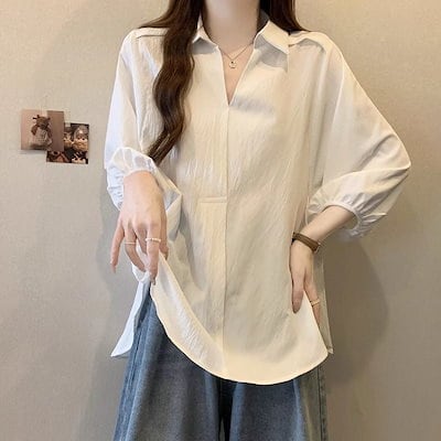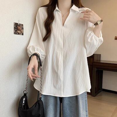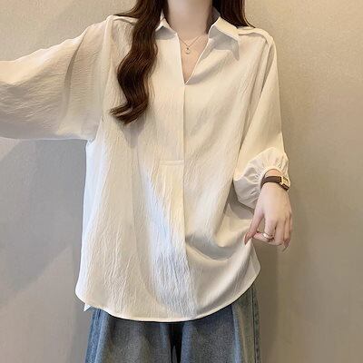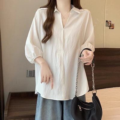 2025 春 夏 シャツ レディース ブラウス Vネックシャツ 七分袖 トップス 韓国ファッション