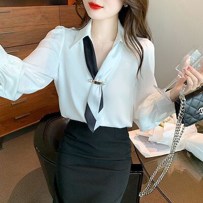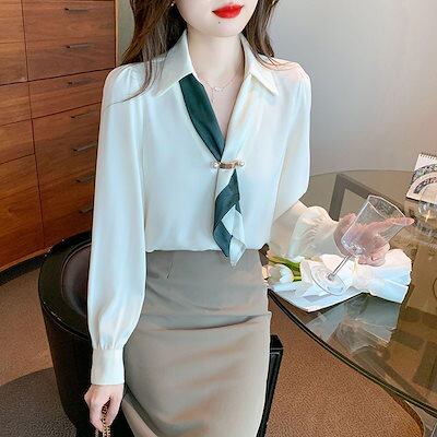 2025 春 夏 シャツ レディース ブラウス 通勤シャツ 長袖シフォンシャツ トップス 韓国ファッション