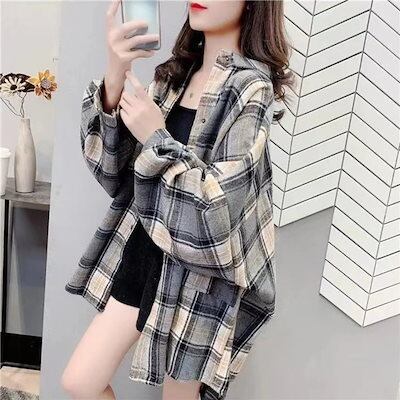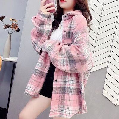 2025 春 夏 シャツ レディース ブラウス チェック 厚手 長袖 シャツ トップス 韓国ファッション