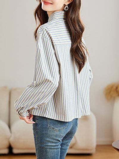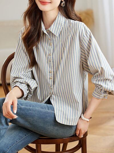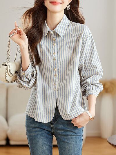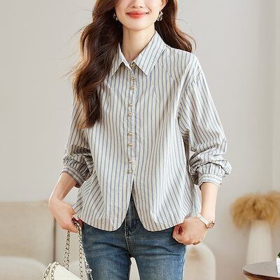2025 春 夏 シャツ レディース ブラウス ストライプシャツ 通勤 長袖 トップス 韓国ファッション