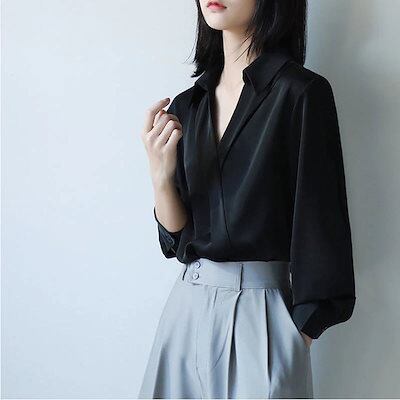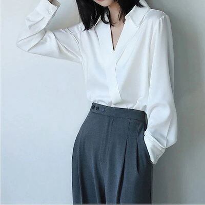 2025 春 夏 シャツ レディース ブラウス Vネックシャツ 長袖シャツ トップス 韓国ファッション