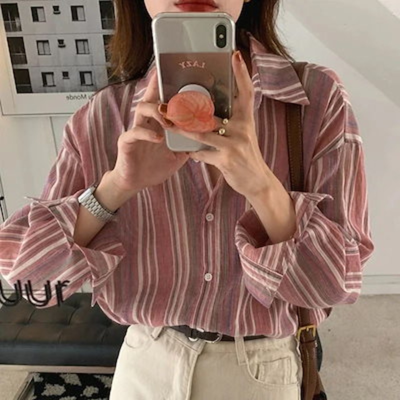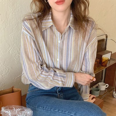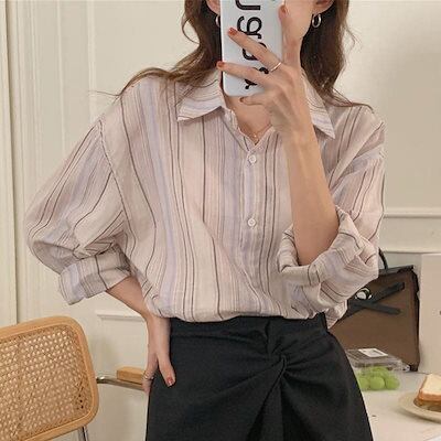 2025 春 夏 シャツ レディース ブラウス ストライプ長袖シャツ シャツ トップス 韓国ファッション