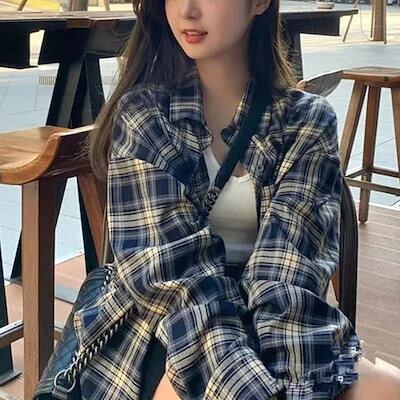 2025 春 夏 シャツ レディース ブラウス チェック長袖 日焼け止め シャツ トップス 韓国ファッション