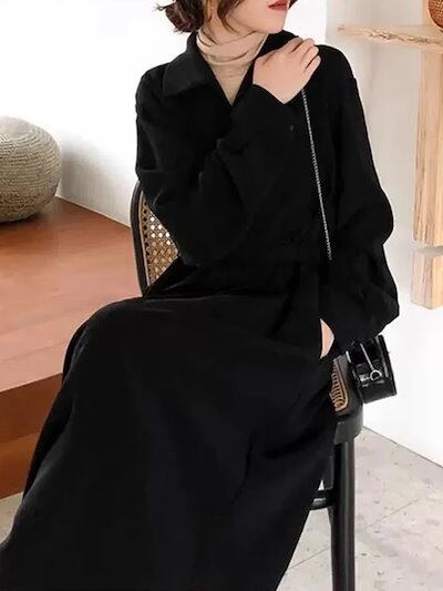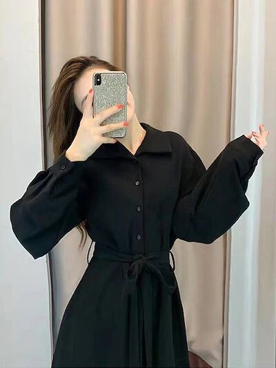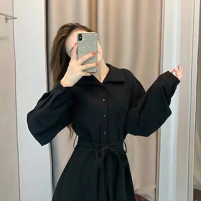 2025 春 夏 レディース ブラウス ワンピース 黒 長袖 ワンピース 韓国ファッション