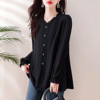 2025 春 夏 シャツ レディース ブラウス OL 通勤 シアーシャツ 体型カバー ロング 長袖 トップス 韓国ファッション