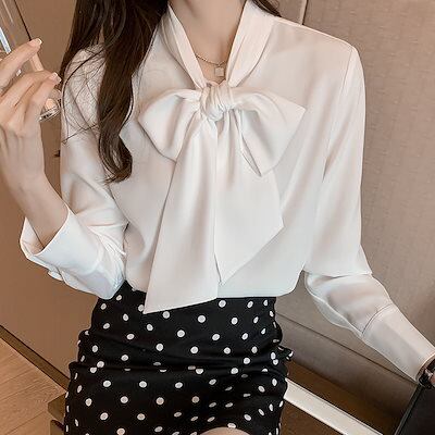 2025 春 夏 シャツ レディース ブラウス リボンシャツ 長袖 Vネック トップス 韓国ファッション