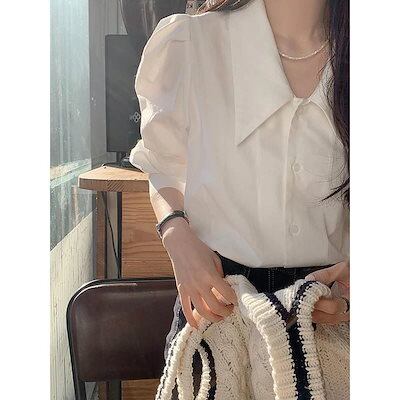 2025 春 夏 シャツ レディース ブラウス 白 トップス 韓国ファッション