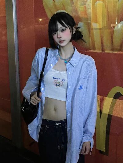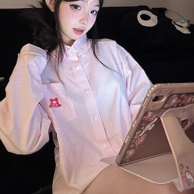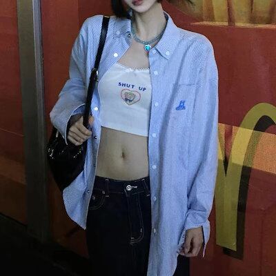2025 春 夏 シャツ レディース ブラウス ストライプ シャツ トップス 韓国ファッション