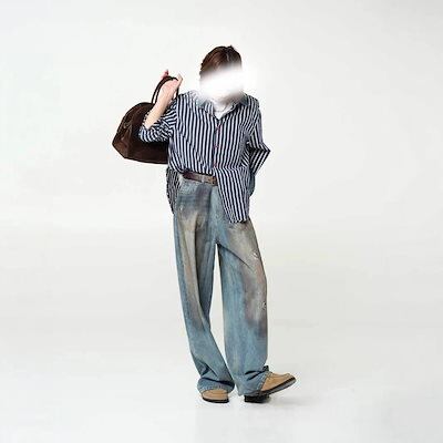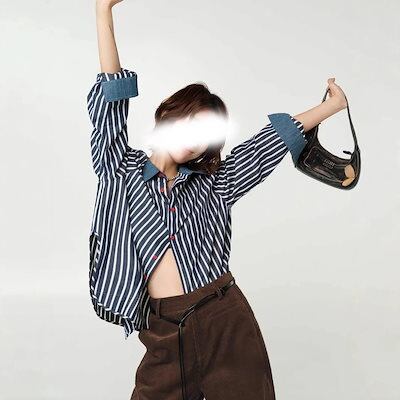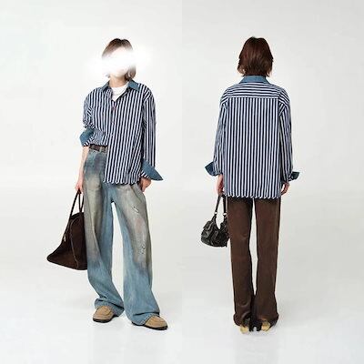 2025 春 夏 シャツ レディース ブラウス 新作 シャツ デニム ストライプ トップス 韓国ファッション