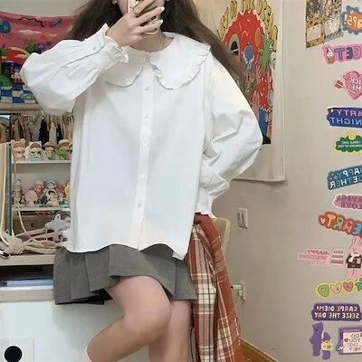2025 春 夏 シャツ レディース ブラウス 長袖 レース ロリータインナー シャツ トップス 韓国ファッション