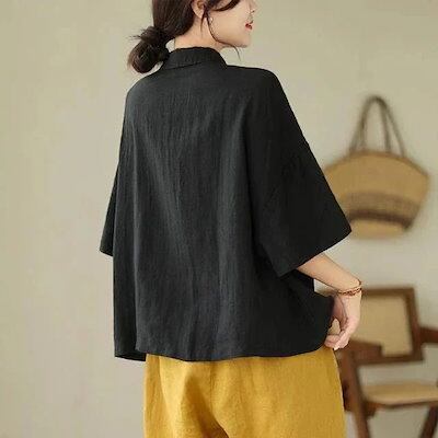2025 春 夏 シャツ レディース ブラウス リネン 日焼け防止 半袖 UVカット トップス 韓国ファッション