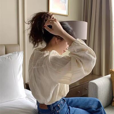 2025 春 夏 シャツ レディース ブラウス 長袖シャツ ラウンドネック シアーシャツ トップス 韓国ファッション