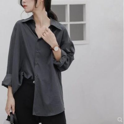 2025 春 夏 シャツ レディース ブラウス グレー シャツ 女 長袖 トップス 韓国ファッション