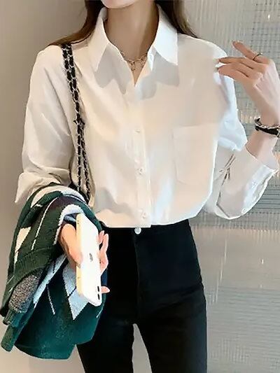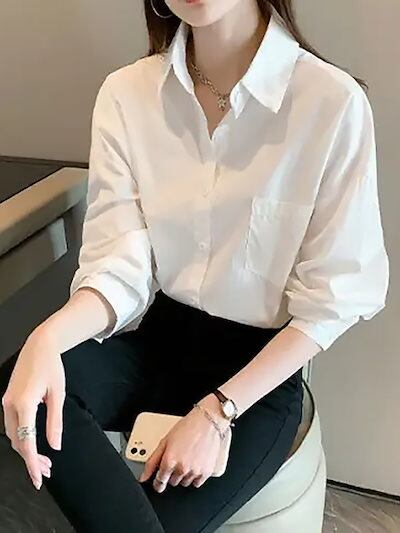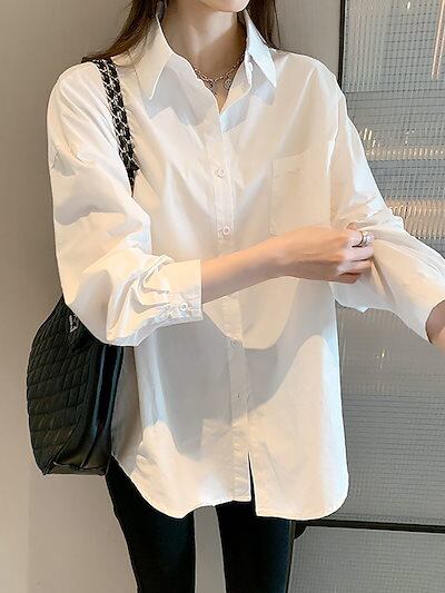 2025 春 夏 シャツ レディース ブラウス ホワイト シャツ 女 新作 セミロング 長袖 トップス 韓国ファッション