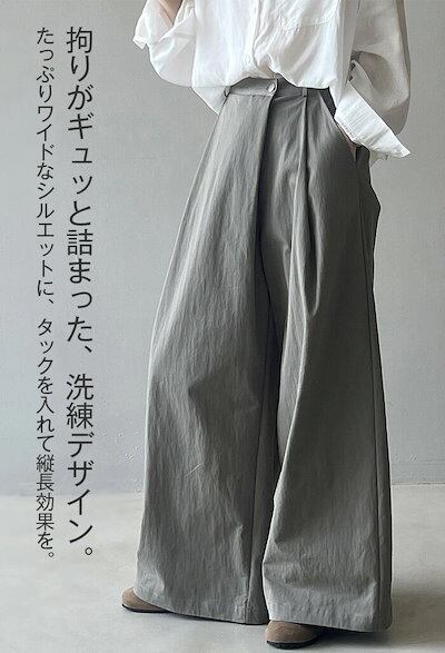 【急速出荷!】ワイドパンツ タックパンツ レディース 変形 ワイド ロング タック パンツ ガウチョパンツ ロングパンツ ワイドタック ラップパンツ オフィス カジュアル 体型カバー 無地 シンプル