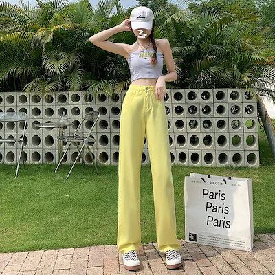 新作 おしゃれ ハイウエスト デニムパンツ 薄手 ゆったり 百掛け ワイドパンツ ワイドパンツ デニム デニムワイドパンツ レディース デニムボトムス スキニーパンツひんやりボトムス 25福袋