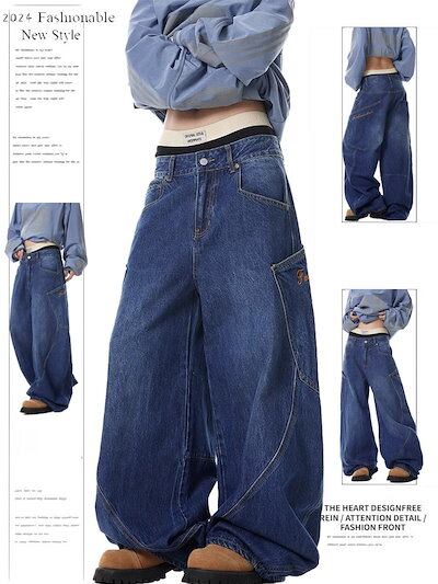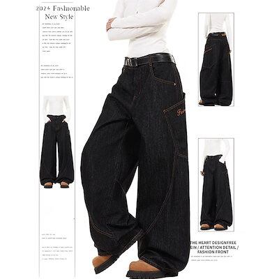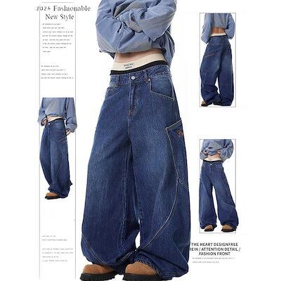 25 デニムパンツ ボトムス ハイウエスト ジーンズ K-PP ストリート系ファッション系韓国風ファッションウェア練習ジーンズ シルエットゆったり レディースカジュアル型メンズライク衣装