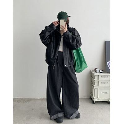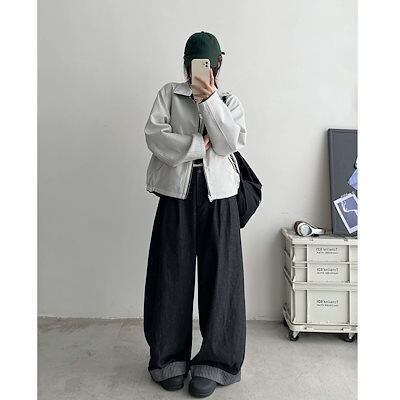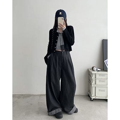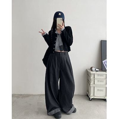 ジーンズのだるさとたるみ感ハイウエストストレートワイドパンツレディース春秋のドレープ感モップパンツロングパンツ