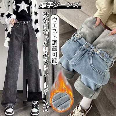 ひんやりボトムス 厚手 ワイドパンツ ジーンズレディース ハイウエスト ゆったり 暖かい ストレートロングズボン 裏起毛ズボン 裏起毛パンツ かっこいい!スラックスパンツ 裏起毛ファッション